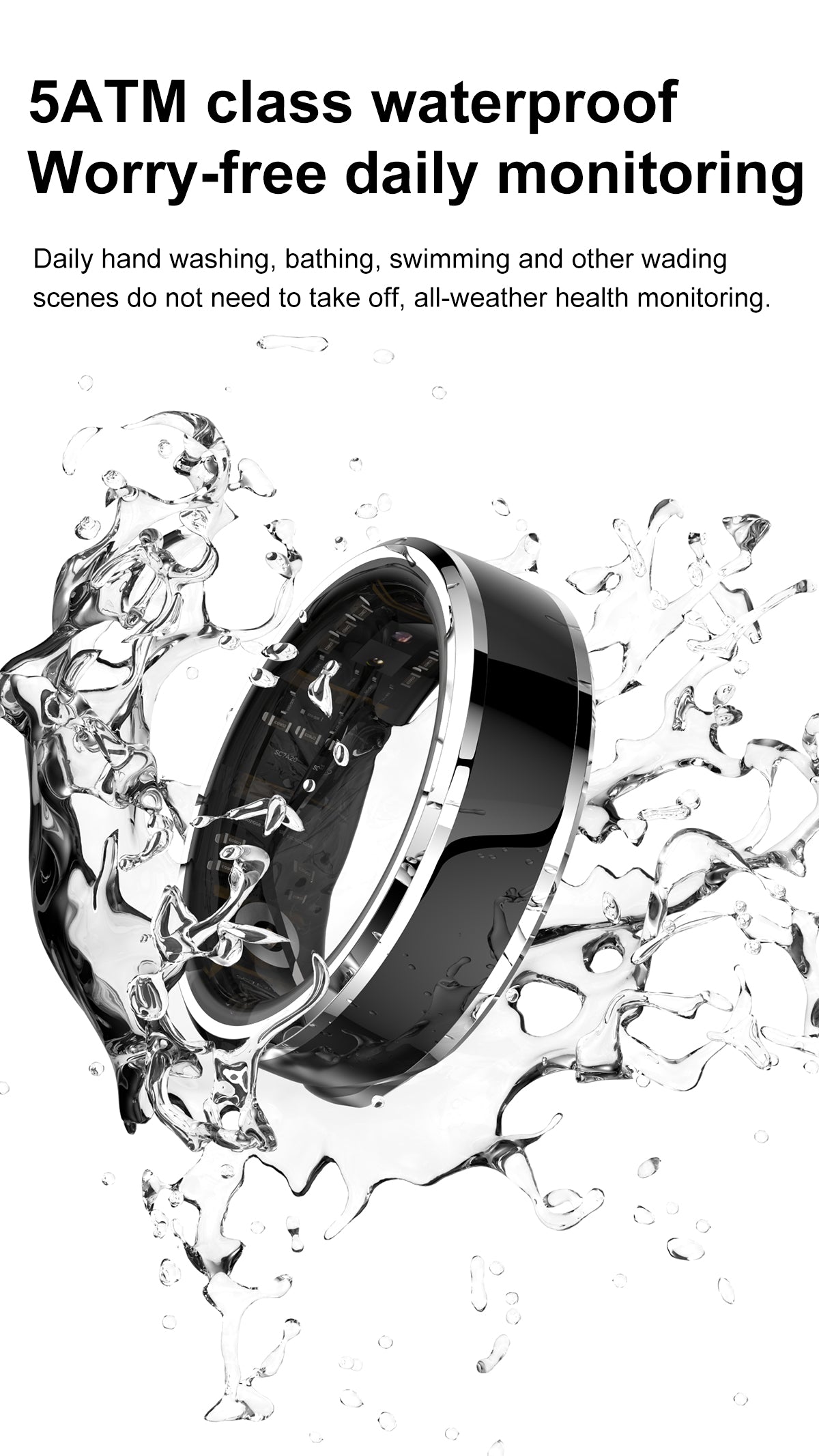 - Water resistance: Low temperature gluing technology ensures water resistance of 5 ATM, which allows the ring to be used while swimming.