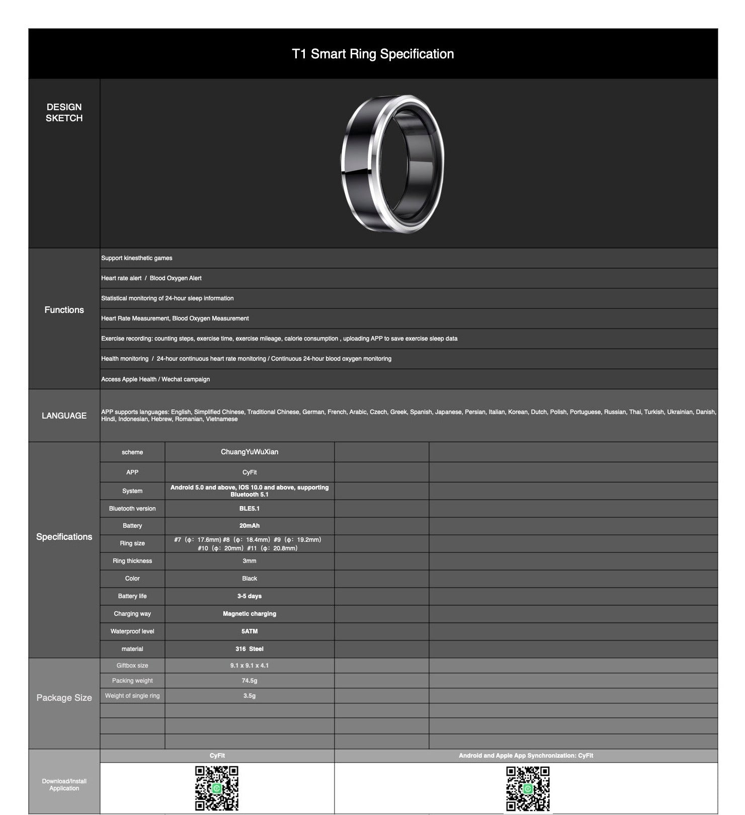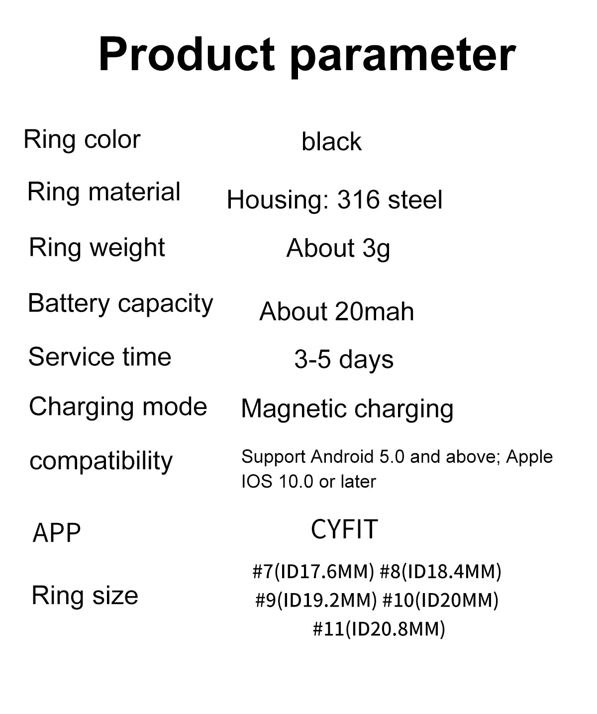 Instructions for use: Before first use, scan the QR code to download the CYFIT APP, charge the ring and start using according to the instructions.